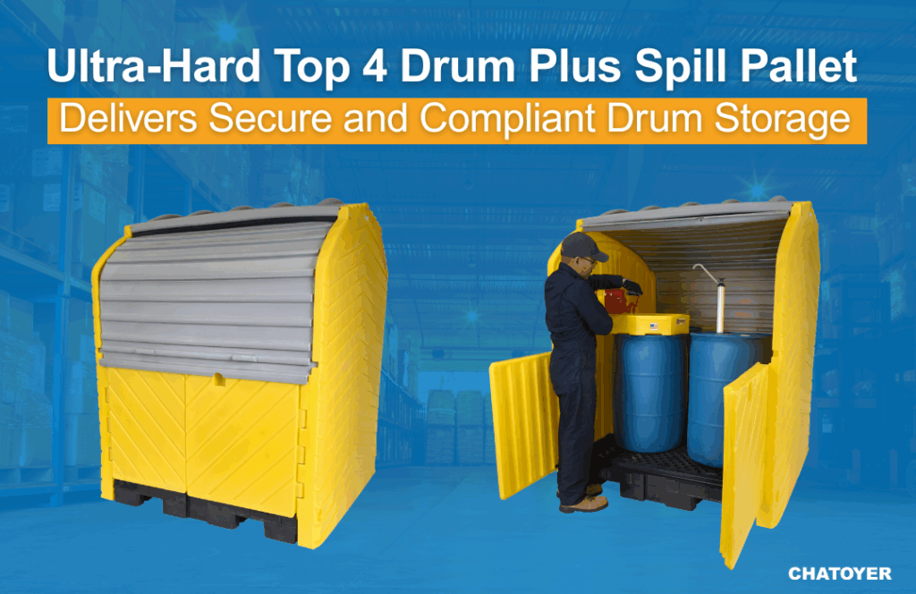 Ultra-Hard Top 4 Drum Plus Spill Pallet Delivers Secure and Compliant Drum Storage